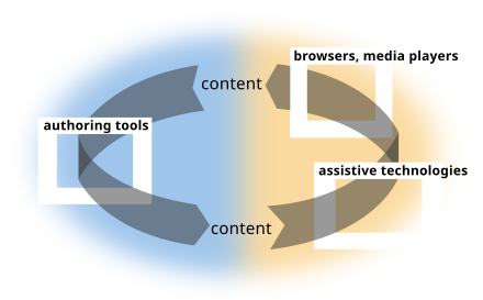 The World Wide Web Consortium (W3C) Web Accessibility Initiative (WAI) develops web accessibility standards for the different components: