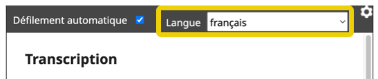 2. Utilisez la liste déroulante « Langue » pour sélectionner la transcription.